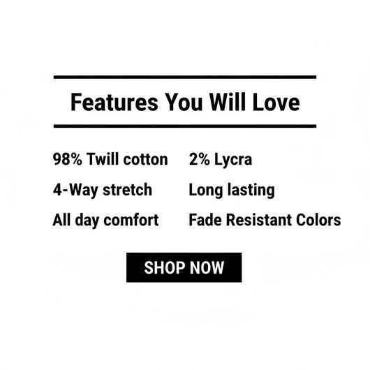 👖 Fabric: 98% Cotton, 2% Lycra – soft, breathable & flexible