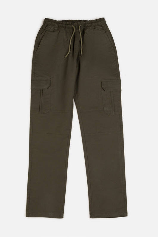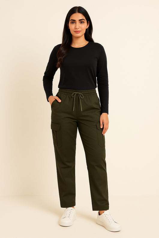 6-Pockets Relaxed Fit Cargo Trousers-Military